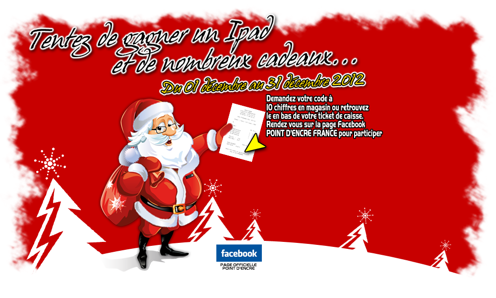 Ensuite, le client n’aura qu’a se rendre sur le site www.pointdencre.fr et cliquer sur le lien le conduisant sur la page Facebook POINT D’ENCRE FRANCE,sélectionner le jeu POINT D’ENCRE de Noël